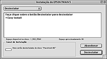 ![]() | Seleccione EPSON TWAIN 5 a partir da lista e, em seguida, faça clique em Adicionar/Remover (Windows Me ou 98) ou em Alterar/Remover (Windows XP ou 2000). |