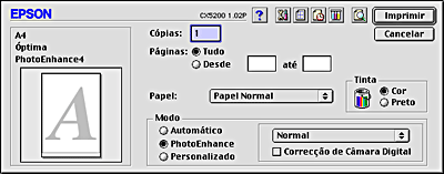 Se seleccionar PhotoEnhance, activa também a caixa de verificação Correcção de Câmara Digital. Seleccione esta caixa de verificação quando quiser imprimir fotografias tiradas com uma câmara digital para dar às imagens impressas o aspecto suave e natural das fotografias tiradas com uma máquina fotográfica convencional.