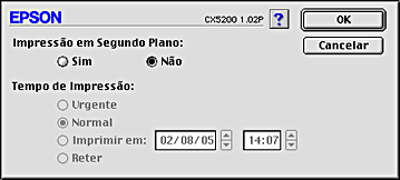 Faça clique no ícone de impressão em segundo plano na caixa de diálogo Imprimir. Aparece a caixa de diálogo de impressão em segundo plano.