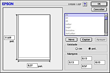 Para eliminar um formato de papel personalizado, faça clique em Personalizar na caixa de diálogo de definição de página, seleccione o formato na lista da caixa de diálogo do papel personalizado e faça clique em Apagar.