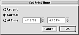 Seleccione a opção urgente, normal ou relativa à data para a opção de tempo de impressão.