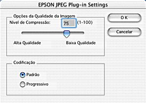 Pode definir o nível de compressão da imagem através da barra de deslizamento ou inserindo um valor directamente. Quanto maior for o valor, menor será o tamanho do ficheiro; no entanto a qualidade de imagem diminuirá.