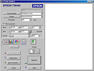 Digitaliza a imagem ou a demarcação activada na janela Antever. |