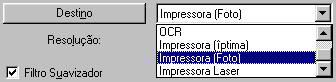 Se estiver a imprimir imagens digitalizadas com as definições Economia, Normal ou Qualidade Óptima seleccionadas no software da impressora, é aconselhável seleccionar a definição Impressora (Óptima). Se estiver a imprimir com as definições Excelente ou Qualidade Foto seleccionadas, seleccione Impressora (Foto).