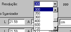 Pode alterar a resolução para a operação de digitalização actual seleccionando uma resolução ou inserindo um valor. Esta definição substitui a definição de resolução efectuada na caixa de diálogo Destino.