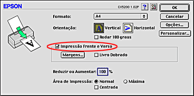 Em Macintosh, seleccione a caixa de verificação Impressão Frente e Verso no menu Definir Página.