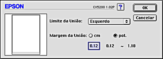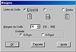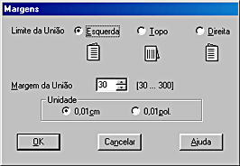A margem de união real pode variar consoante a aplicação utilizada. Antes de imprimir uma tarefa de impressão completa, experimente diferentes valores para a margem de união.
