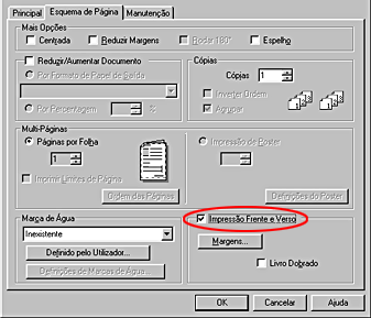 Em Windows, seleccione a caixa de verificação Impressão Frente e Verso no menu Esquema de Página.