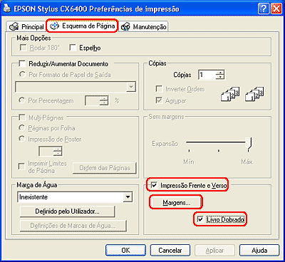 Seleccione a caixa de verificação Impressão frente e verso.
