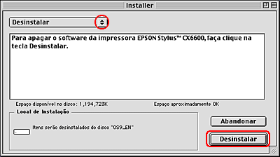 ![]() | Seleccione Desinstalar no menu pendente situado no canto superior esquerdo e, em seguida, faça clique em Desinstalar. |