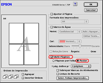 Seleccione a caixa de verificação Multi-Páginas e, em seguida, seleccione Poster.