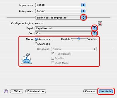 Definições da impressora em Mac OS X