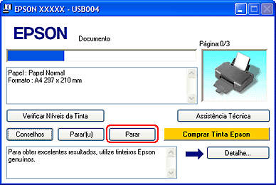 Pode cancelar a impressão através do medidor de evolução ou do EPSON Spool Manager. Consulte a secção adequada apresentada em seguida.