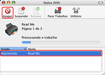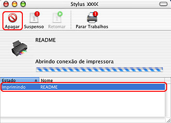 Faça clique na tecla Apagar para cancelar a tarefa de impressão.