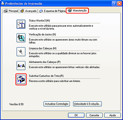 Se o indicador luminoso da tinta