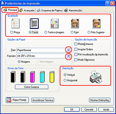 Aceda às definições da impressora.
