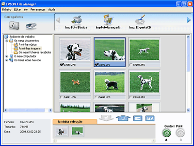 Faça clique em Iniciar e seleccione Todos os Programas (Windows XP) ou Programas (Windows Me, 98 ou 2000). Em seguida, seleccione EPSON Creativity Suite, File Manager e faça clique em EPSON File Manager.
