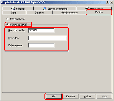 As instruções apresentadas em seguida explicam como configurar a impressora para que possa ser partilhada por outros utilizadores na rede.