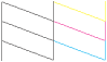 Se a impressão da página de teste não for satisfatória, isso significa que existe um problema com a impressora. Por exemplo, se aparecerem faixas no modelo de verificação, conforme indica a figura, isso pode significar que existem jactos obstruídos ou que a cabeça de impressão está desalinhada.