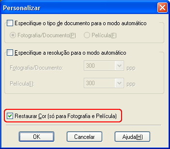 Execute as seguintes operações para restaurar as cores com o EPSON Scan: