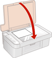 Coloque o documento ou a fotografia no vidro de digitalização com a face voltada para baixo. Certifique-se de que a parte superior do documento ou da fotografia fica encostada ao canto superior esquerdo do vidro de digitalização.