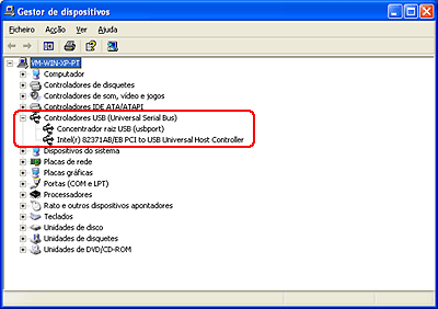 Se os itens USB Universal Host Controller e USB Root Hub aparecerem na lista, o Windows suporta USB.