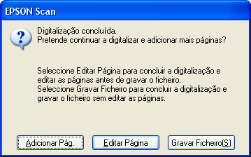 Se quiser digitalizar várias páginas, faça clique em Adicionar Pág., substitua a primeira página que se encontra no vidro de digitalização pela segunda página e faça clique em Digitalizar. Repita esta operação para cada página do documento. Quando terminar, faça clique em Editar Página e avance para o ponto 9.