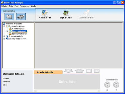 Para obter mais informações sobre o Epson File Manager, abra o menu Ajuda e seleccione Guia do Utilizador do EPSON File Manager.