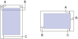Linha de cola na margem superior do formulário (nas entradas frontal e superior) Linha de cola numa margem lateral (só entrada frontal)