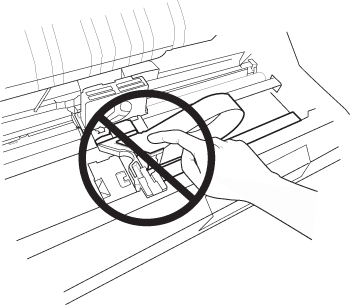 Tem de deslocar a cabeça de impressão com as mãos para substituir a cassete de fita. Se utilizou a impressora há pouco tempo, a cabeça de impressão poderá estar quente. Deixe-a arrefecer durante alguns minutos antes de lhe tocar.