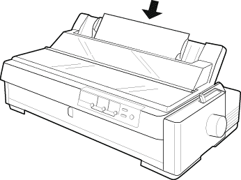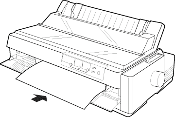 Tipos de Papel e Ranhuras de Papel DisponíveisComo se mostra abaixo, pode colocar papel em folhas soltas, folha a folha, utilizando o suporte de admissão de papel existente na parte superior da impressora ou o suporte de admissão de papel frontal. Pode imprimir em folhas soltas vulgares, formulários de várias vias em folhas soltas, postais e envelopes. Pode utilizar folhas soltas com uma largura de 100 a 420 mm (3,9 a 16,5 polegadas).