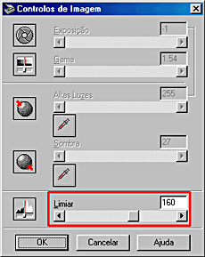 ![]() | Utilize o cursor Limiar para alterar o valor do limiar e controle os resultados das alterações na janela de pré-visualização. O ajuste do valor do limiar pode facilitar o reconhecimento dos caracteres através do OCR. |