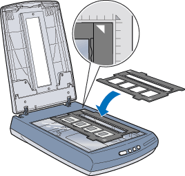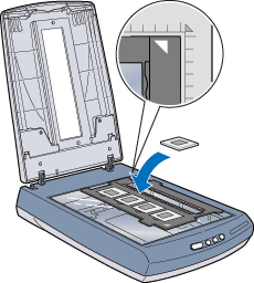 Coloque o suporte para película no vidro de digitalização alinhado com o canto superior direito do vidro de digitalização.