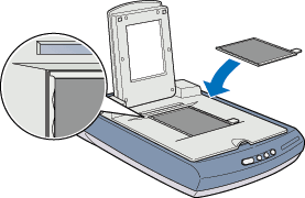Coloque um slide directamente sobre o vidro de digitalização e alinhe-o com o canto superior direito do adaptador de película.