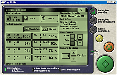 Utilize esta aplicação para transformar o seu digitalizador numa fotocopiadora digital. A aplicação assemelha-se a uma fotocopiadora; no entanto, as suas funções são mais eficazes e flexíveis do que as de fotocopiadoras convencionais. Para mais informações, consulte a documentação do EPSON Smart Panel.