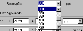 Pode alterar a resolução para a operação de digitalização actual seleccionando uma resolução ou inserindo um valor. Esta definição substitui a definição de resolução efectuada na caixa de diálogo Destino.