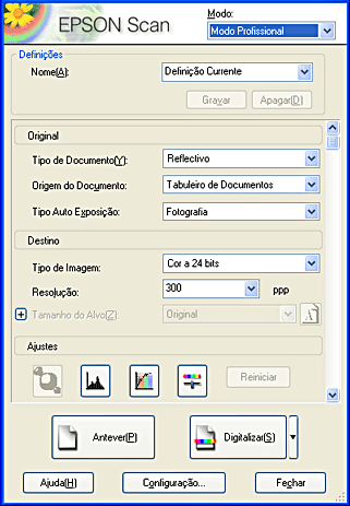 Depois de o EPSON Scan pré-visualizar e identificar o tipo de documento, aparece a janela apresentada em seguida.