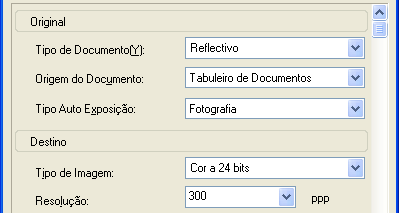 Especifique as definições Original, Tipo de Imagem e Resolução em função das imagens.