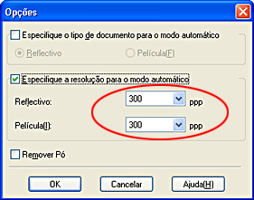 Quando pretender imprimir imagens digitalizadas numa impressora de jacto de tinta EPSON ou revelá-las num laboratório, configure a resolução de saída para 300 ppp. Se seleccionar uma resolução superior a 300 ppp, o tempo de impressão é maior mas a qualidade de impressão mantém-se.