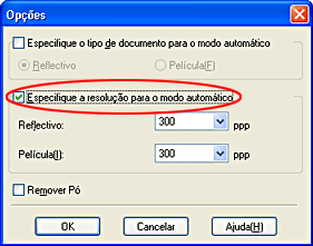 Seleccione a caixa de verificação Especifique a resolução para o modo automático.