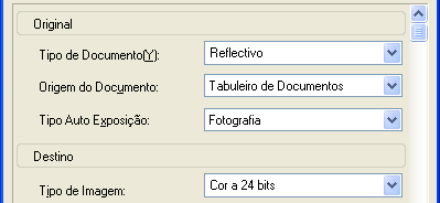 Especifique as definições Tipo de Documento e Tipo de Imagem em função das imagens.