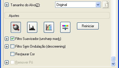 Especifique o tamanho de impressão da imagem digitalizada na opção de tamanho do alvo e efectue ajustes utilizando as ferramentas de ajuste da qualidade de imagem, se necessário.