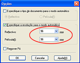 Seleccione 96 a partir da lista para a opção Reflectivo ou Película e, em seguida, faça clique em OK.