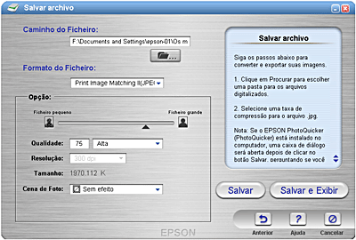 Utilize esta aplicação para digitalizar, converter e guardar a imagem numa pasta específica. Quando inicia esta aplicação, a imagem é digitalizada a partir do EPSON Scan e é apresentada na caixa de diálogo do assistente de verificação (Verify Assistant). Faça clique em Seguinte e aparecerá a caixa de diálogo apresentada em seguida.
