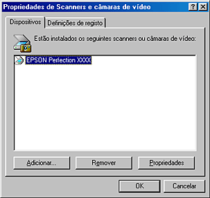 Seleccione o digitalizador a partir da lista de digitalizadores e câmaras instaladas. Faça clique em Propriedades.