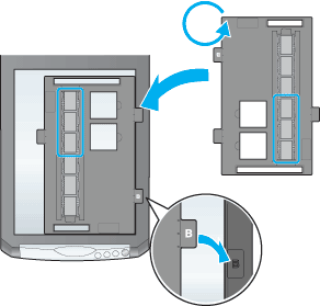 Quando pretender digitalizar as películas na área B do suporte para películas: