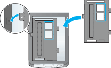 Faça deslizar o suporte para películas na tampa do digitalizador.
