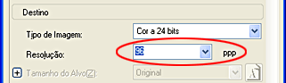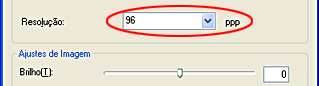 Quando pretender visualizar imagens digitalizadas no ecrã do computador, defina a resolução de saída para 96 ppp. O monitor só consegue reproduzir imagens até 96 ppp. A digitalização com alta resolução é contraproducente. Os ficheiros de imagem com baixa resolução são mais pequenos e mais fáceis de utilizar. Por conseguinte, utilize uma baixa resolução para digitalizar imagens que pretende utilizar na Internet ou em correio electrónico.