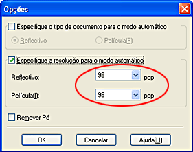 Seleccione 96 a partir da lista para a opção Reflectivo ou Película e, em seguida, faça clique em OK.