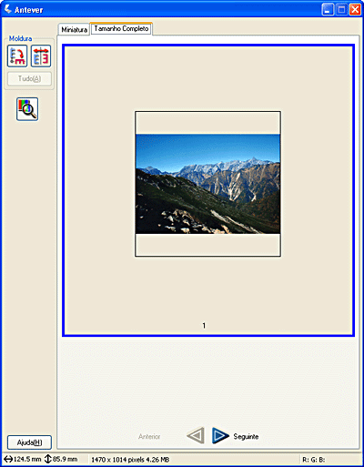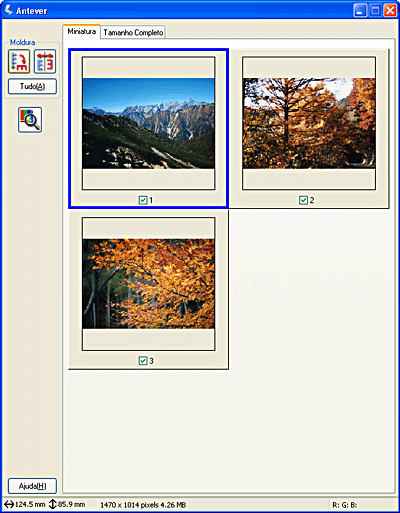 Quando faz clique duas vezes numa miniatura, a imagem é ampliada e apresentada no menu Tamanho Completo.